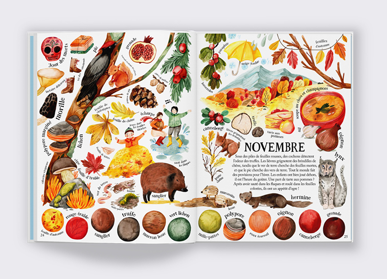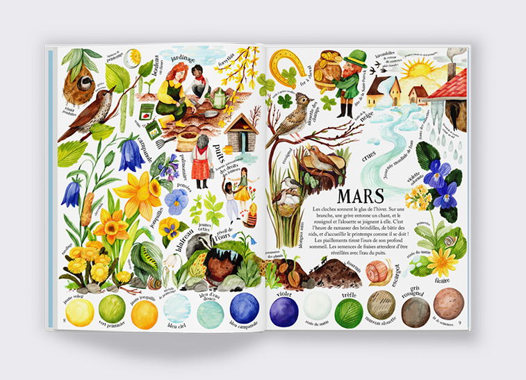 • Inspirer la créativité : invite les lecteurs à observer, nommer et créer des couleurs inspirées par la beauté des saisons.